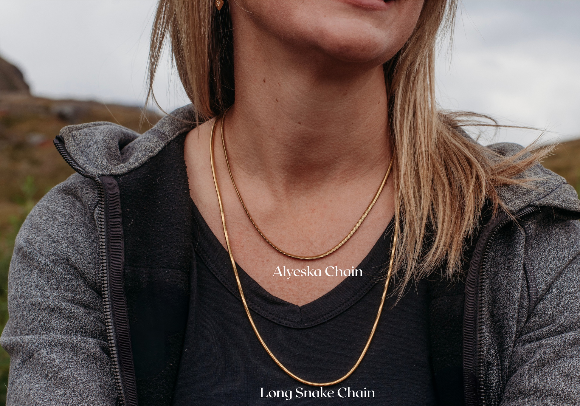Nothing says Alaska quite like Gold, and these thick snake chain style necklaces are the perfect addition to your Alaskan (or any) adventures. Comes in 2 different lengths and look lovely layered together, or as a stand alone!